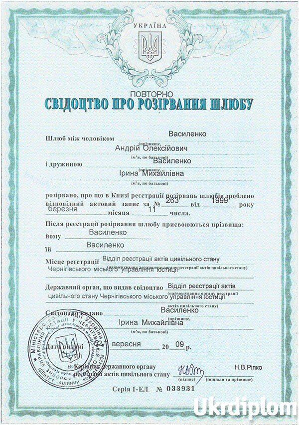 Свидетельство о разводе